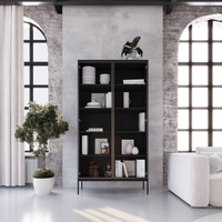 INDUST 190 cm hohe Vitrine mit Glastüren und Metallbeinen
